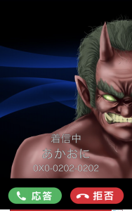 そして、電話をかけると、下の画像の様な怖いあかおにから